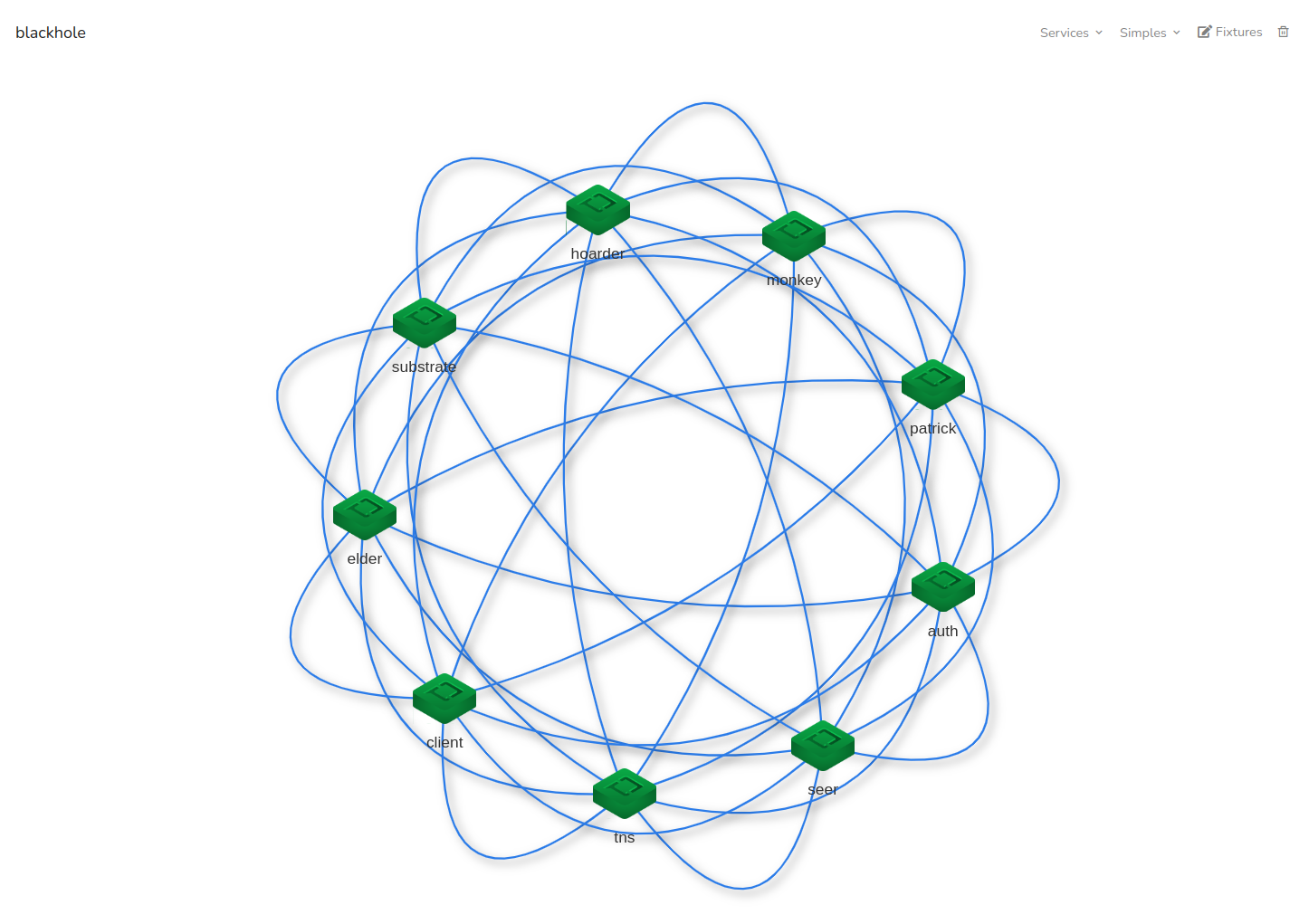 @blackholesuffix indicates the cloud instance - Ports: Right column shows TCP ports for each service